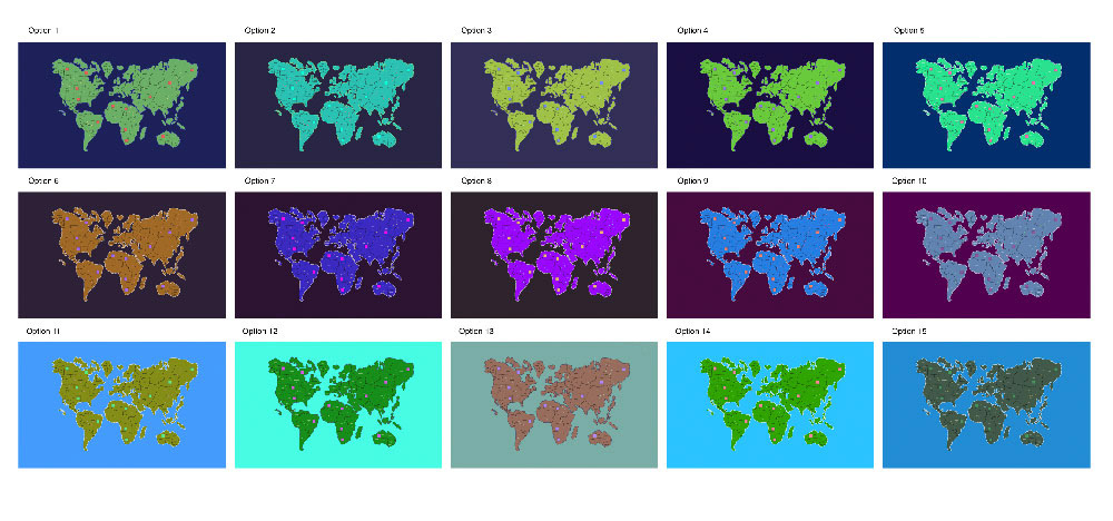 One of the earliest map designs I explored incorporated colors inspired by the game Risk, as I have always admired its map art.